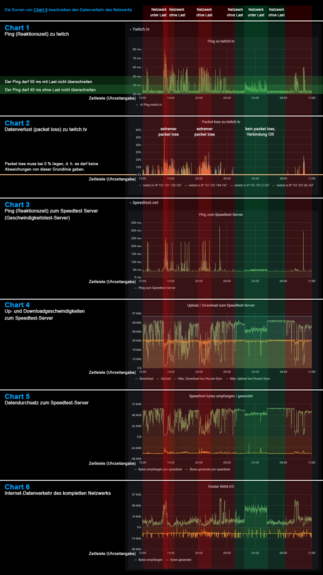 Alle Ausschläge in Chart 1, dürfen unter Last 50 ms (breiter grüner Balken) nicht überschreiten, ohne Last, dürfen sie 40 ms (schmaler grüner Balken) nicht überschreiten.